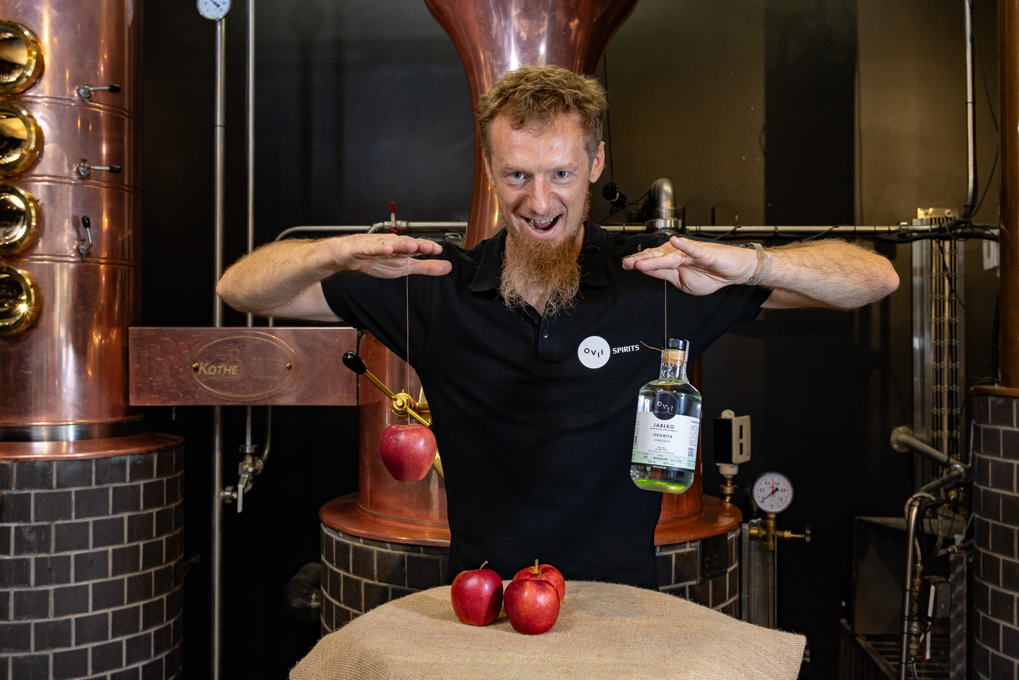 Proces tworzenia okowity jest prosty! Jabłka, drożdże i woda dają nam zacier, który później destylujemy i butelkujemy. Ale… Jak zwykle ważne są szczegóły! Jabłka pochodzą ze sprawdzonego źródła – od lat tego samego – Radosława Suchorskiego z Wojnowic (ttps://g.co/kgs/N3Cv7A) Drożdże – dobrane z pomocą zaprzyjaźnionych specjalistów wyciągają z owoców maksimum aromatu! Fermentacja – powolna, niczym nie „podkręcana”. Destylacja – długa, przeprowadzana w miedzianym alembiku – co powoduje, że z alkoholowych par wyłapywane są wszelkie związki siarki… Pomimo tego do butelek trafia zaledwie ok 50% uzyskanego trunku! Odrzucamy przedgony i pogony – wszystko to co nie smakuje dobrze, lub może zawierać coś niepożądanego. Wszystko powyższe spina jeszcze jedna rzecz: pasja całej OVII ekipy!